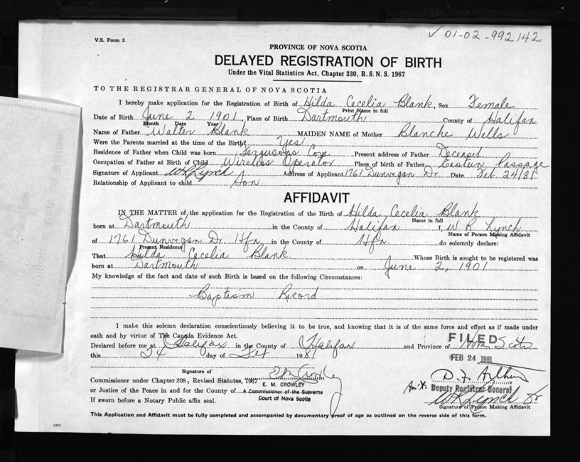 | Born | Abt 1920 | Eastern Passage, Halifax County, Nova Scotia, Canada [1, 2] |