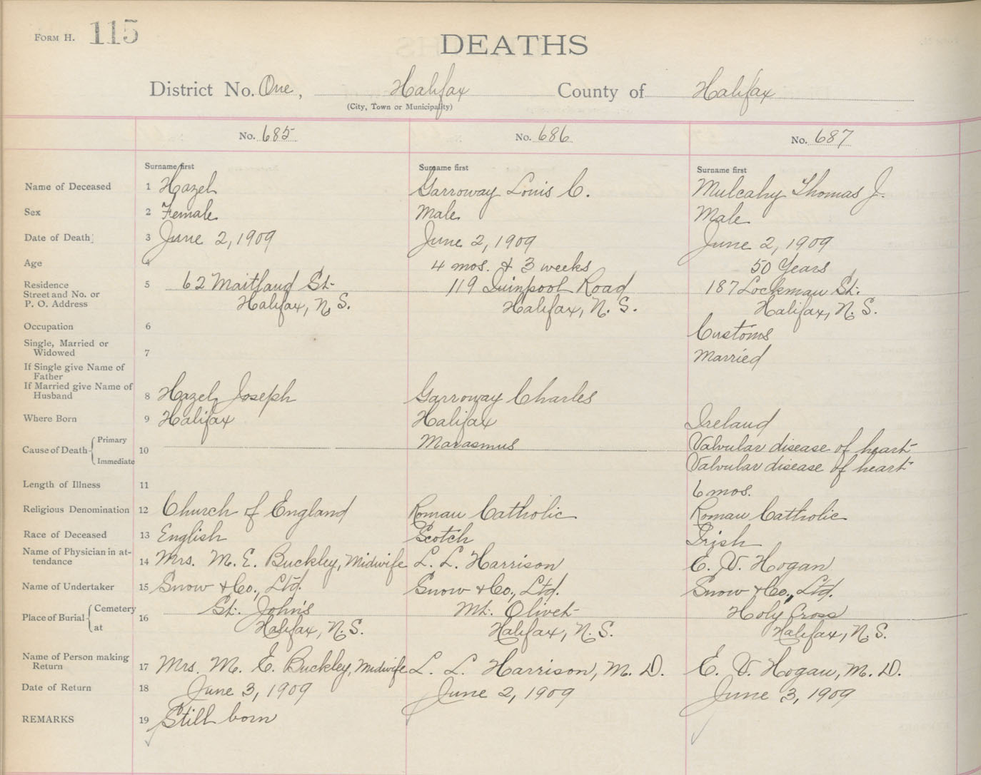 | Buried | 6 Jun 1909 | Woodlawn Cemetery, Dartmouth, Nova Scotia, Canada [2, 4] |